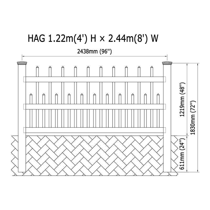 | Picket | 1 1/2 "x 1 1/2" x 40 '' x 21ks (standardní mezera) |