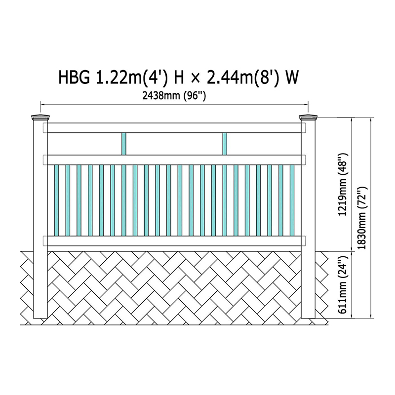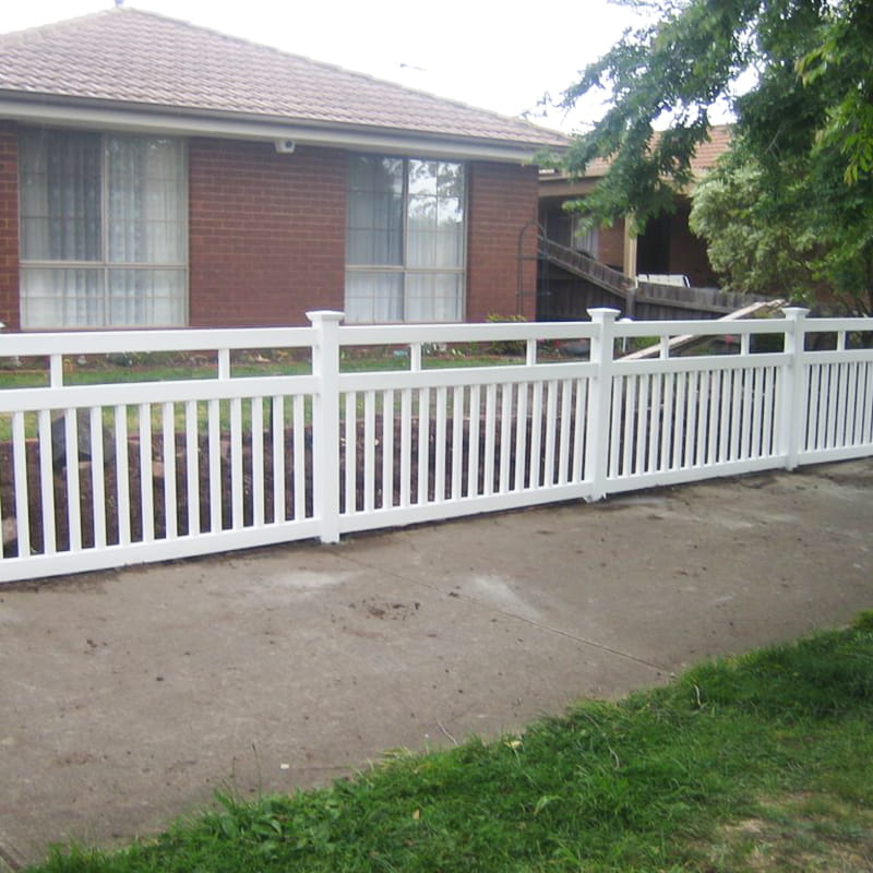 Design je dokončen atraktivními poštovními uzávěry, včetně čepice New England, ploché čepice a gotické čepice, což vám umožňuje personalizovat vzhled plotu dále. Spodní kolejnice měří 2 "x 3-1/2" a přichází předem na 94 palců pro snadnou montáž, zatímco horní a střední kolejnice jsou také předem zapsány pro instalaci bez námahy a měří 2 "x 3-1/2" při 94 palcích.