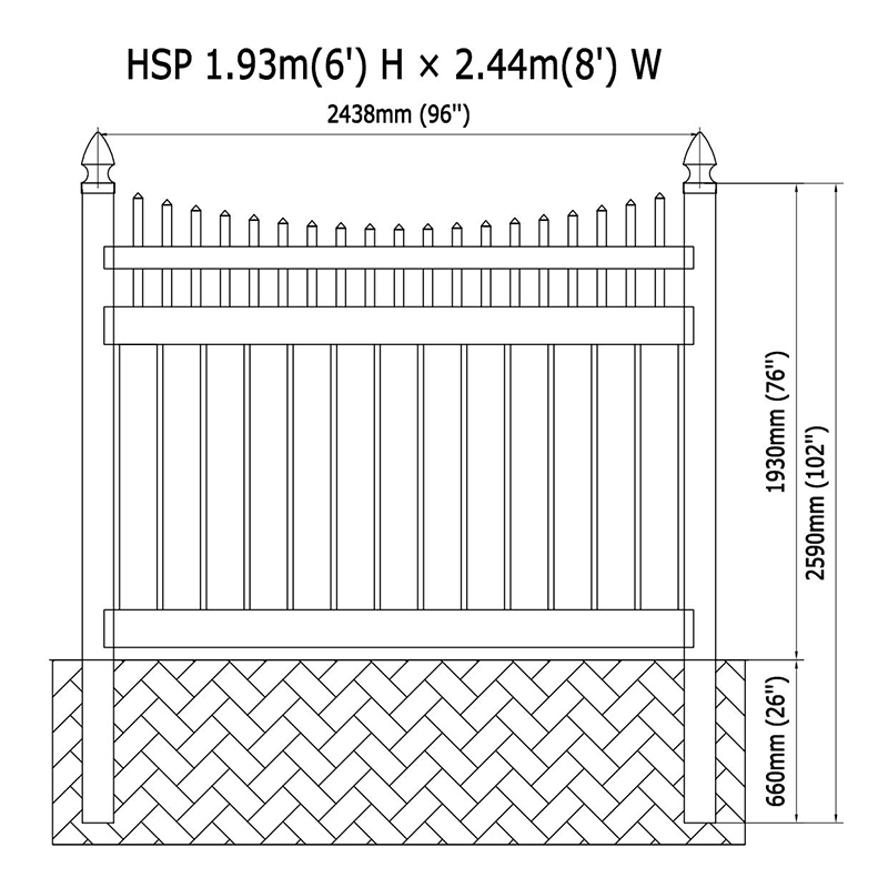 Plot stojí ve standardní výšce 72 palců, což poskytuje ideální rovnováhu mezi viditelností a odloučením. Pro ty, kteří mají specifické potřeby, nabízíme různé výšky a šířky a zajišťujete, abyste si našli perfektní přizpůsobení pro svůj majetek. Každá sekce měří standardní šířku 96 palců, přičemž možnosti přizpůsobení vyhovují vašim požadavkům na projekt.